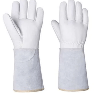 Luva de raspa com punho de raspa: feita inteiramente de raspa, indicada para atividades pesadas que exigem maior resistência térmica e mecânica.